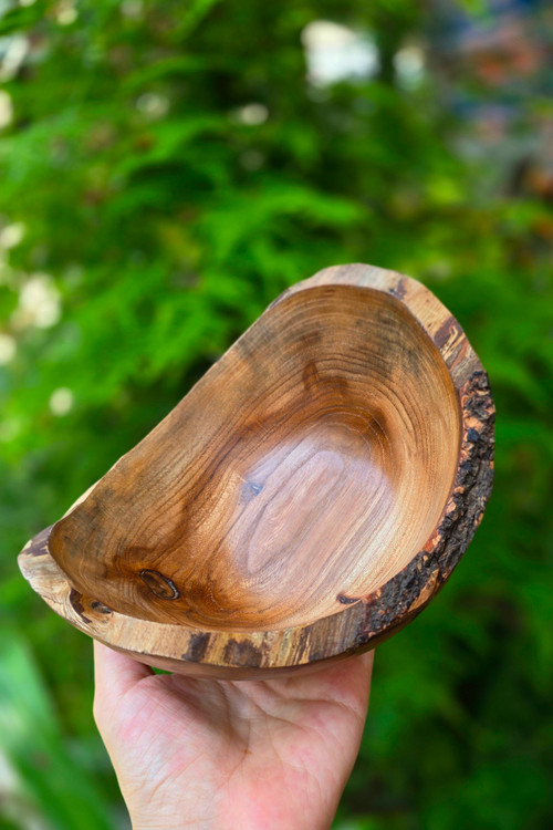 این ظرف دستساز، انتخابی عالی برای سرو آجیل، تنقلات، خشکبار، شکلات و... در فضای منزل یا محیط کار شماست. ترکیب فرم ارگانیک، رنگ گرم چوب گردو و حالت نامنظم لبهها، این محصول را به یک قطعه هنری کاربردی تبدیل کرده است.