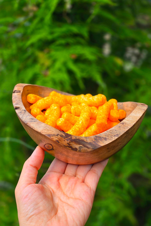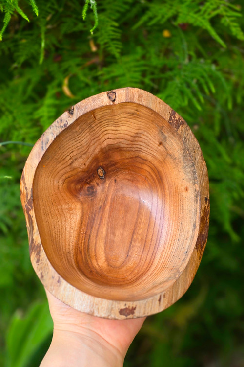 این پیاله چوبی زیبا از چوب طبیعی گردو و به صورت کاملاً دستساز ساخته شده است. طراحی خاص، لبههای دفرمه و رنگ طبیعی چوب، آن را به انتخابی خاص برای سرو تنقلات، پفک، آجیل یا حتی دکور میز تبدیل کرده است. سطح داخلی صیقلی و لبههای نرم، علاوهبر زیبایی، حس خوبی هنگام استفاده به شما میدهد.