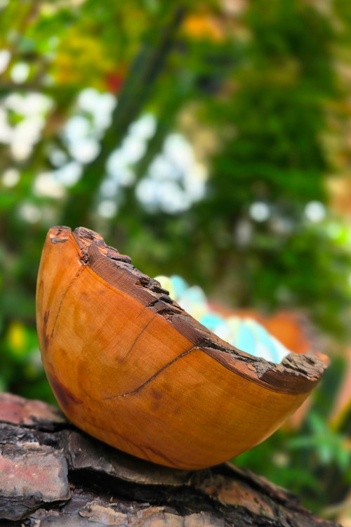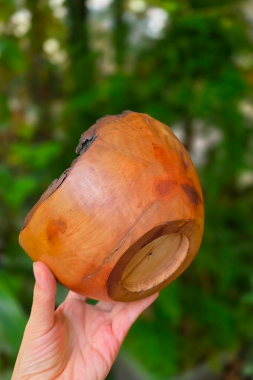 این کاسه چوبی دستساز از چوب گردوی باکیفیت ساخته شده و با لبه پوستی طبیعی جلوهای کاملاً خاص و منحصربهفرد دارد. هر کاسه تنها یکبار در طبیعت شکل میگیرد و به همین دلیل این محصول یک اثر تکنسخه است.