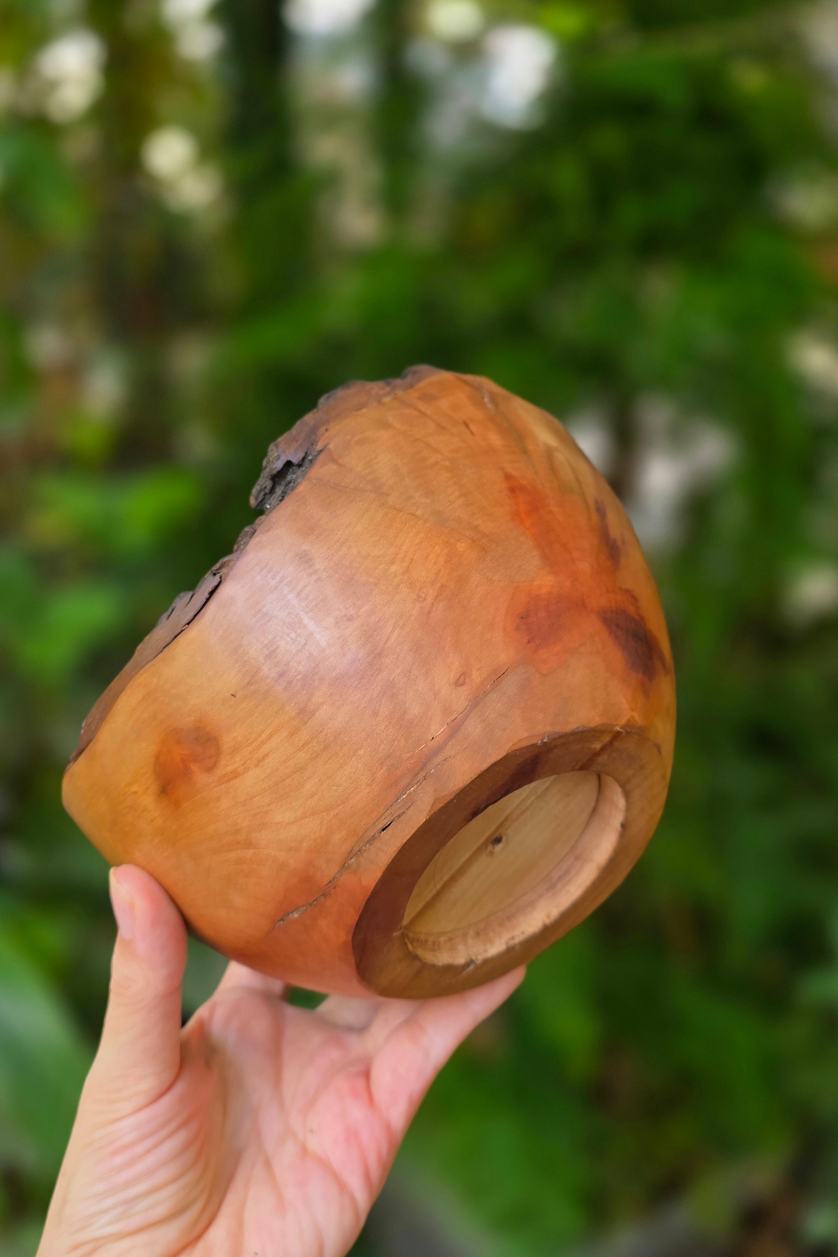 این کاسه چوبی دستساز از چوب گردوی باکیفیت ساخته شده و با لبه پوستی طبیعی جلوهای کاملاً خاص و منحصربهفرد دارد. هر کاسه تنها یکبار در طبیعت شکل میگیرد و به همین دلیل این محصول یک اثر تکنسخه است.
