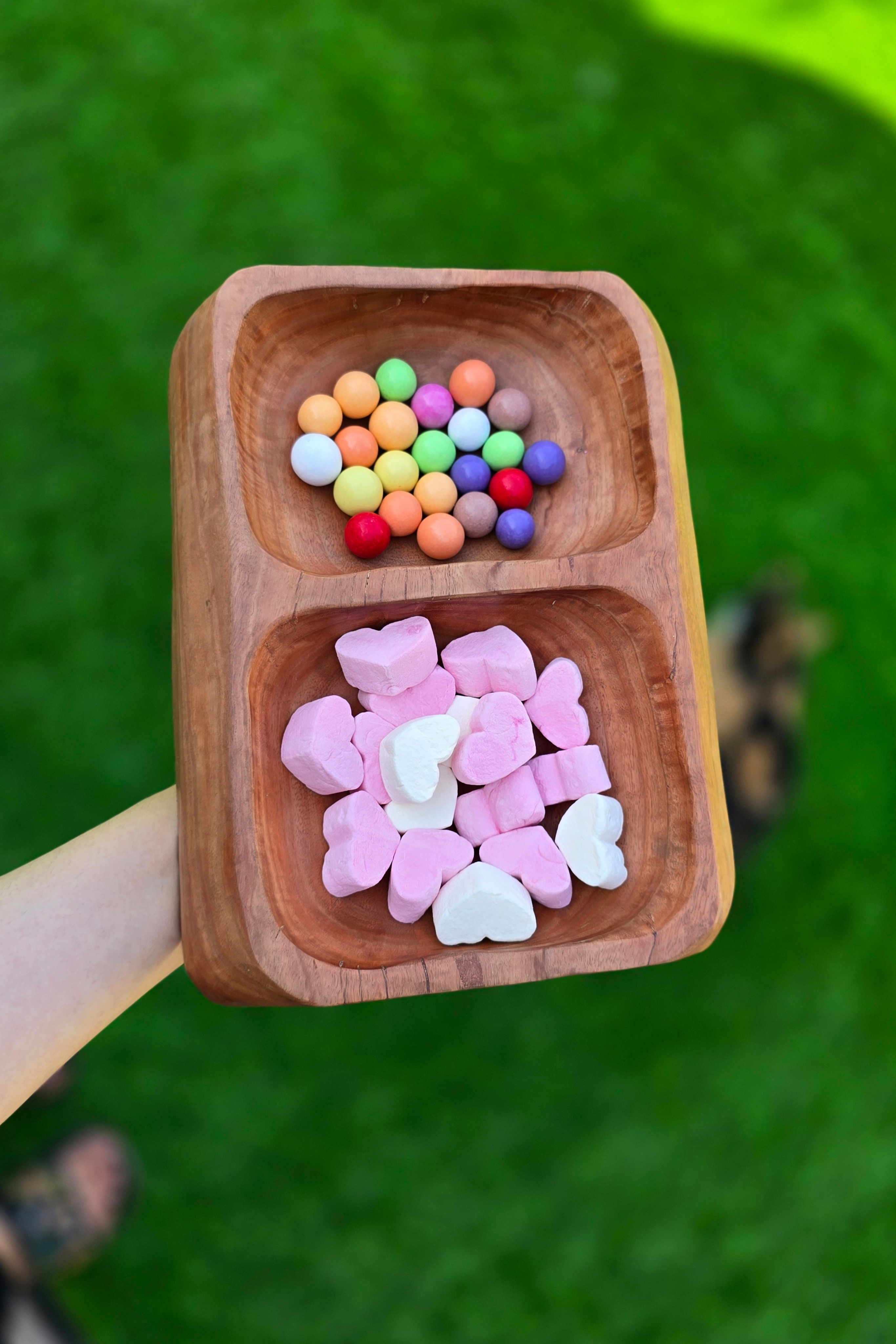 اردوخوری چوبی اکالیپتوس دوقسمتی، انتخابی شیک برای پذیرایی در مهمانیها و دورهمیهاست. این محصول با ابعاد ۲۵×۲۰ سانتیمتر از چوب طبیعی و مرغوب اکالیپتوس ساخته شده و طراحی دو قسمتی آن امکان سرو همزمان انواع آجیل، شکلات، میوه خشک و تنقلات را فراهم میکند.